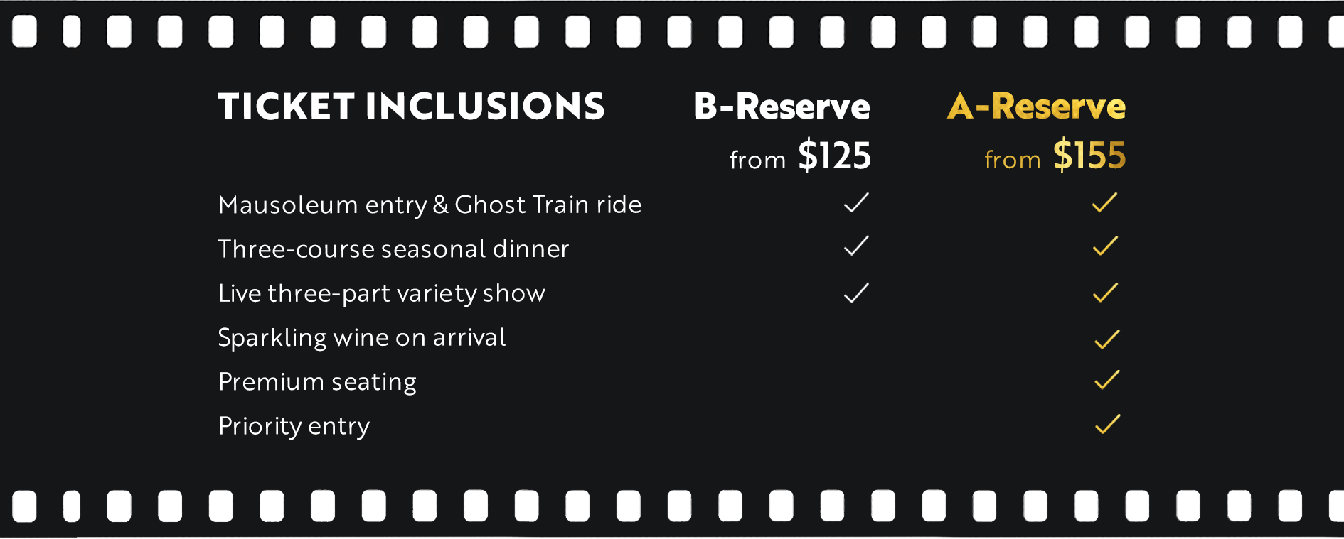 Indulge in a carefully curated three-course seasonal menu, designed to elevate your night from start to finish. Opt for an A-Reserve ticket and you’ll even be welcomed with a complimentary sparkling wine - sip, settle in, and let the night take over.